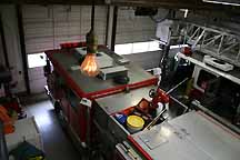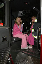 Then Dan showed them where the other firemen sat, and where all the equipment on the firetruck was located. Panels, pumps, nozels, fittings, hoses, tools to pry or cut, and a ladder that can go three stories high. As you can see the crew joined in to make sure no one was left out. It was fun sharing this with the whole group, and a typical tour of a most unusual bulb. |