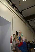 Some folks say what good is it, giving off so little light, and hanging so high out of the way? But I can tell you, at night when it's really dark in here it gives off enough light to see around the trucks on this side. It has been on TV many times since Charles Kuralt came here in 1972. We even had a birthday party for it 6 years ago when it turned 100. Important people like President Bush, Senators, Congressmen, and other cities sent proclamations of congratulations for the ocassion. It's been talked about in many papers, magazines, books, and even Guiness Book of Records, and Ripleys Believe it or Not. It has been a part of our fire department, and our heritage, and we are proud to share it with you, and with the camera on the wall and the net, the whole world! |