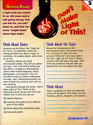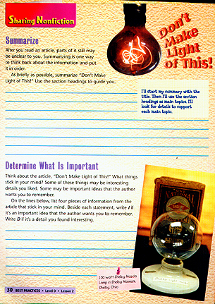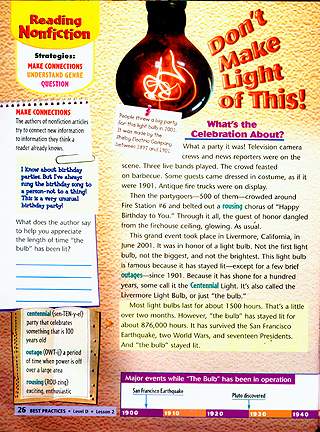 Our Bulb made it into a childrens text book in New York by Options Publishing Inc.
