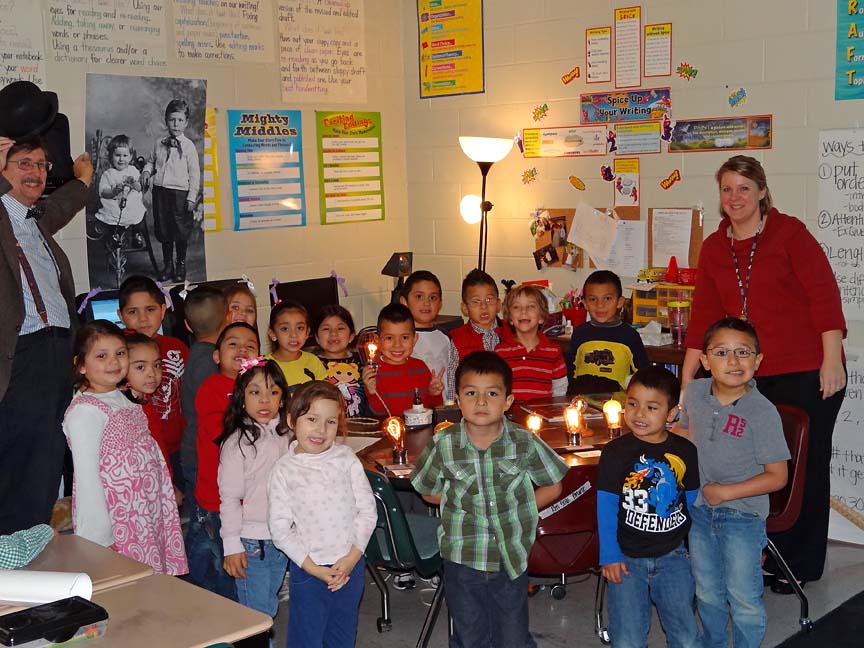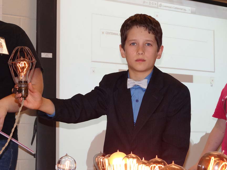 of the lightbulb, and then gave them a tour of the fire trucks.